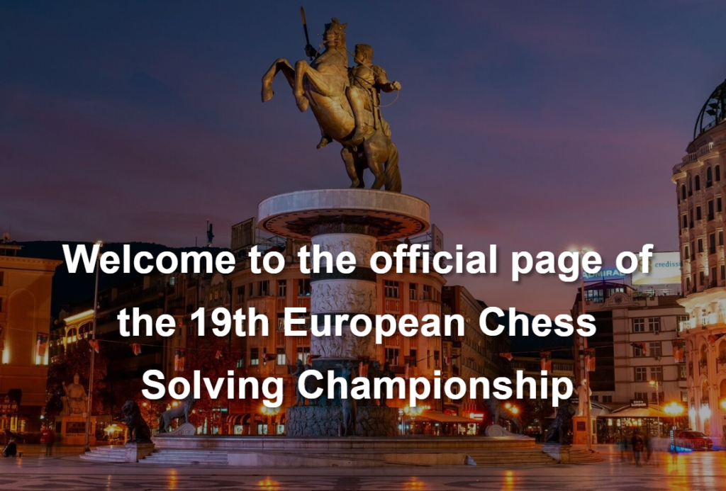 The Technical Organizer, Chess Club Gambit Asseco SEE, with the support of the Chess Federation of North Macedonia – Commission for Chess Composition, has the honour to invite European national teams and individual solvers to participate in the 19th European Chess Solving Championship (ECSC).