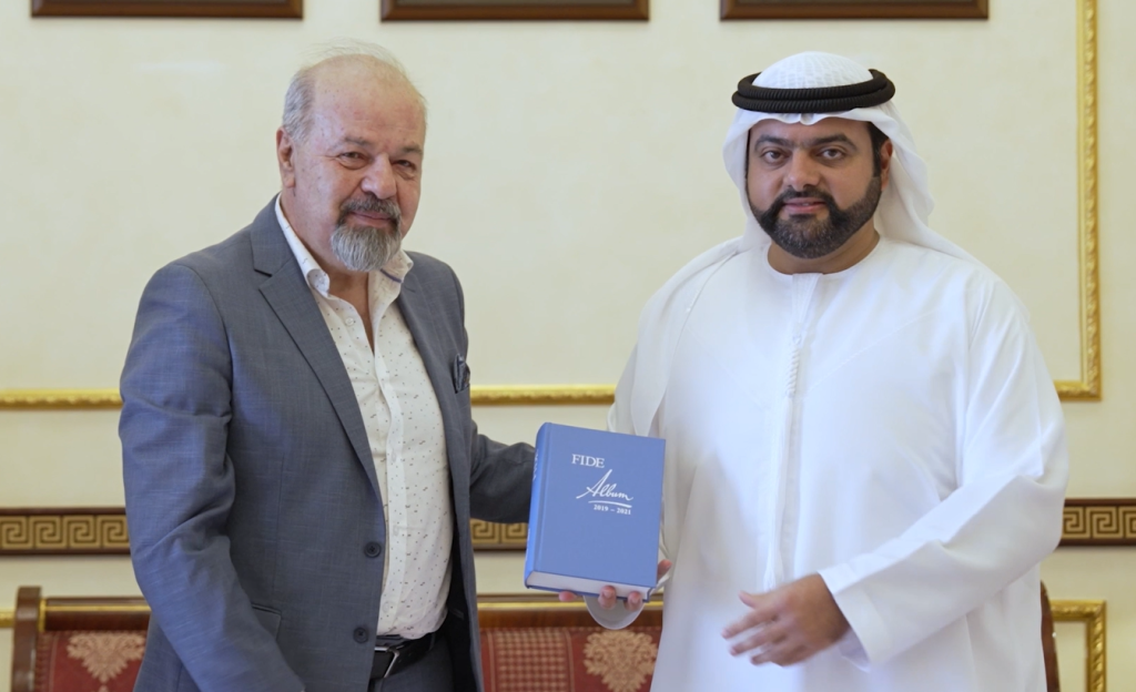 WFCC President Marjan Kovačević expressed heartfelt gratitude to the Crown Prince for his generous and continuous support to the Federation — both on an annual basis and through the WFCC Grand Prix cycles — and presented him with the latest edition of the FIDE Album.