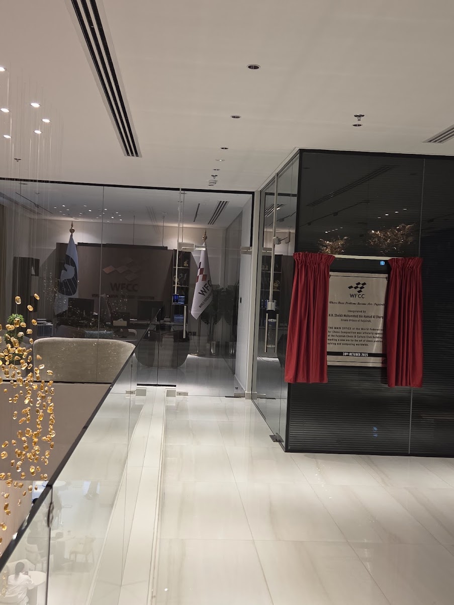 On 30 October 2025, a solemn opening ceremony was held to mark the inauguration of the WFCC office in the magnificent new home of the Fujairah Chess & Culture Club (FCCC). The office, located within the splendid three-storey chess palace, was officially opened by H.H. Sheikh Mohamed bin Hamad Al Sharqi, Crown Prince of Fujairah.